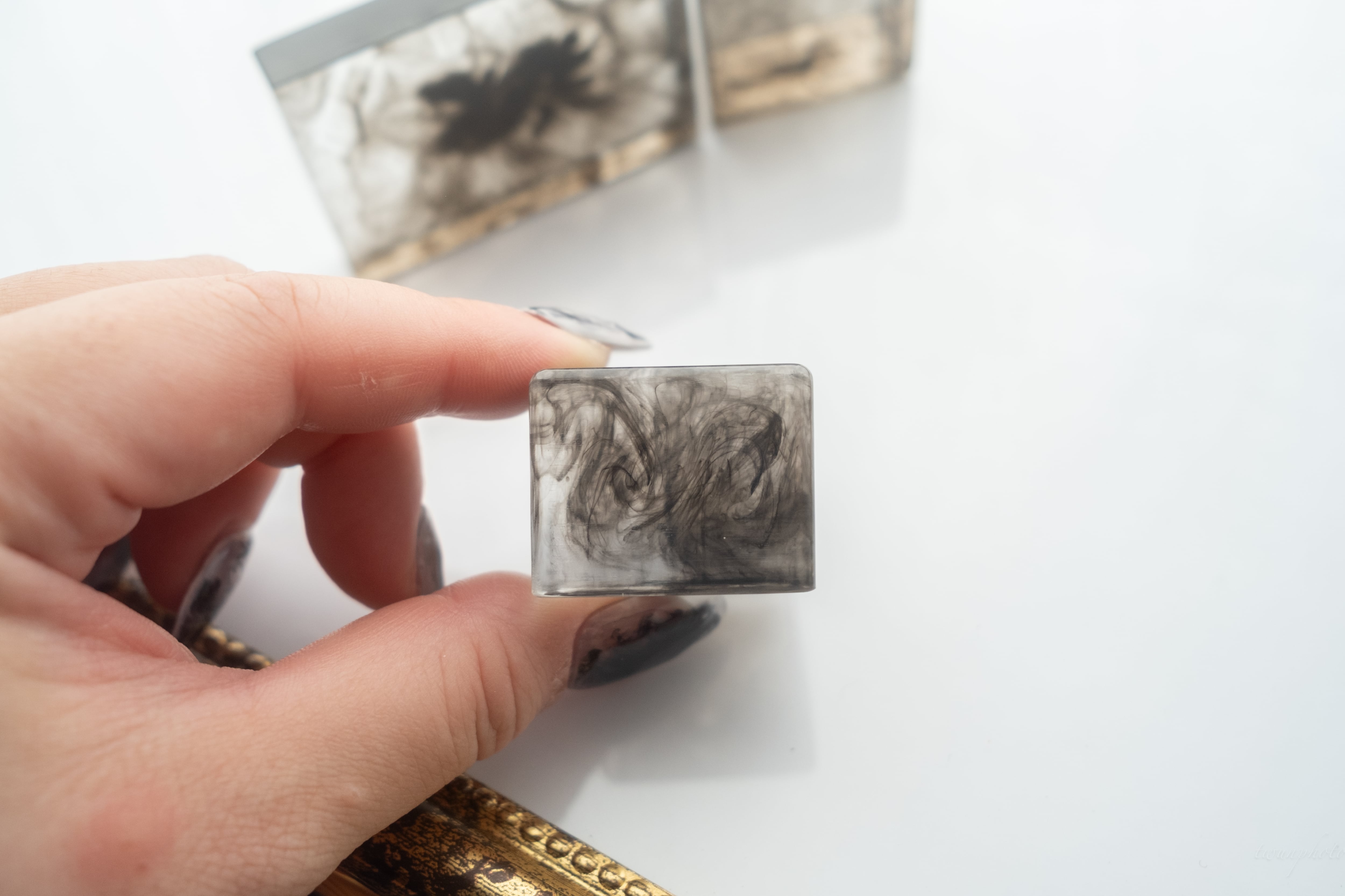 エポキシレジンの中に、黒インクを閉じ込め”陰陽”を表したアートオブジェです。
