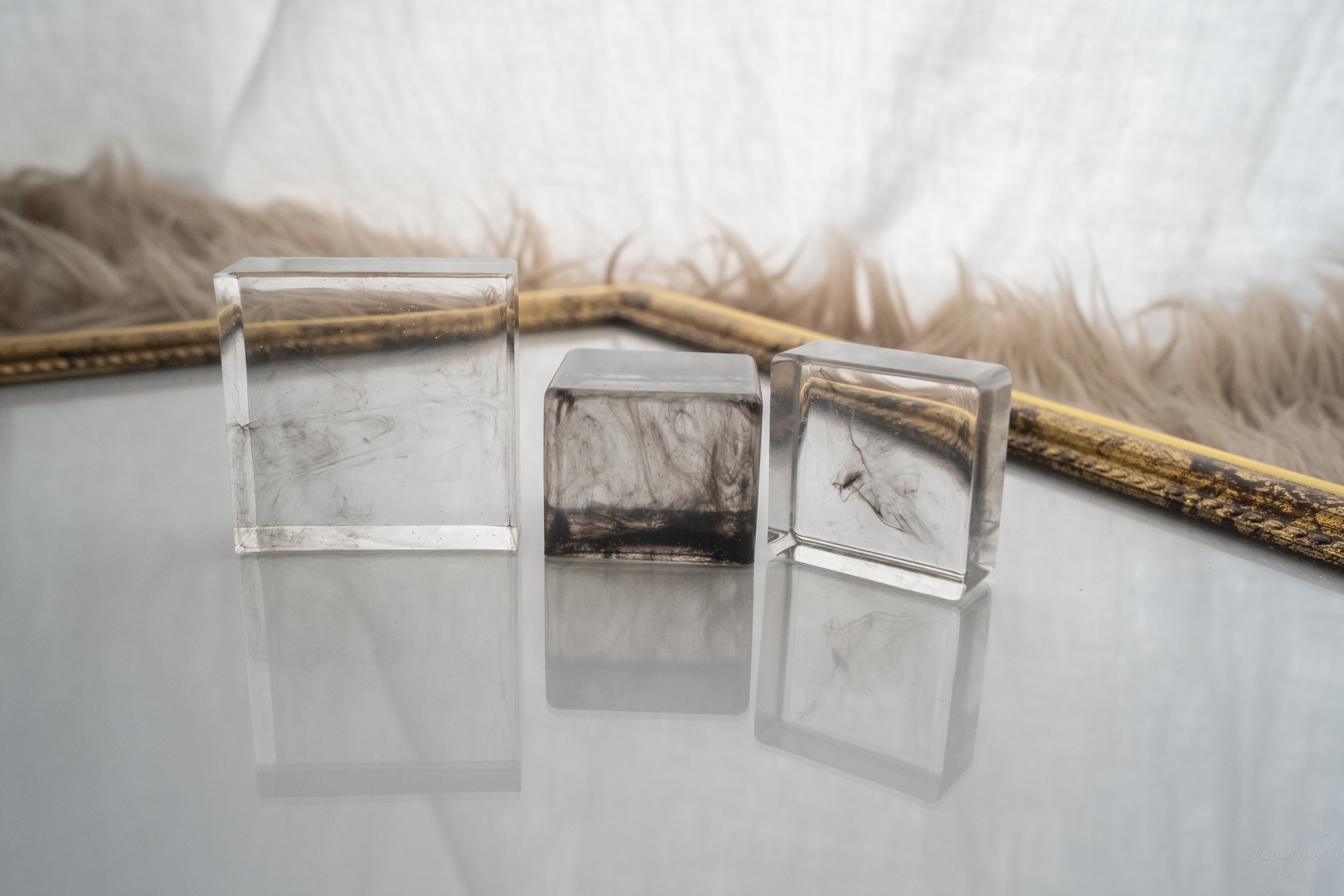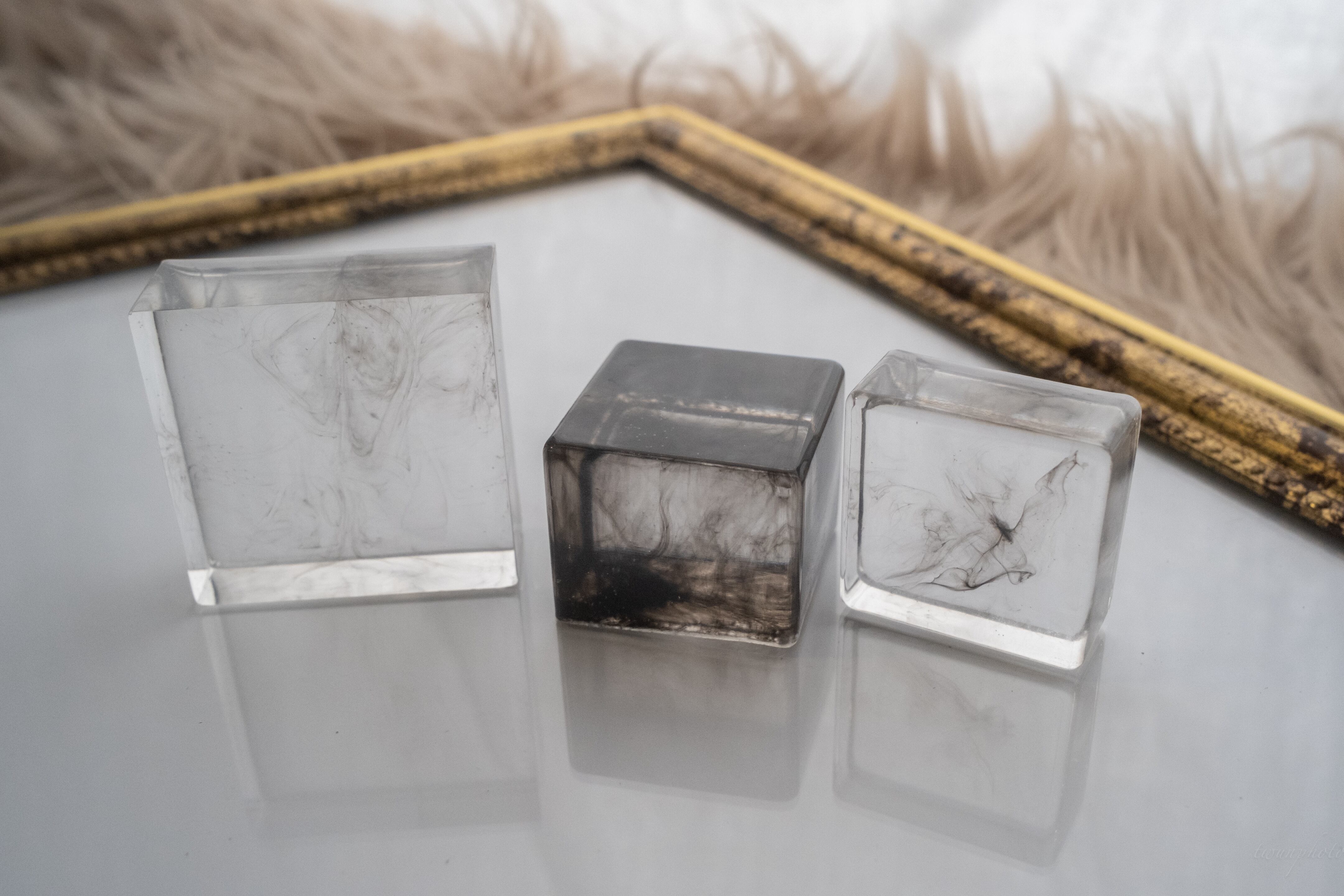 エポキシレジンの中に、黒インクを閉じ込め”陰陽”を表したアートオブジェです。
